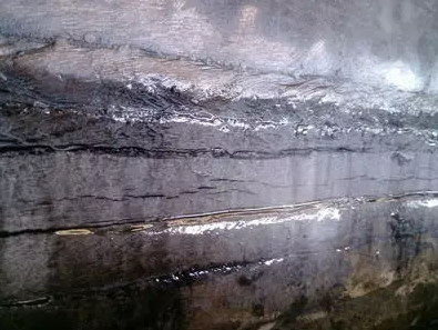 某體育場(chǎng)鋼結(jié)構(gòu)支座出現(xiàn)熱裂紋,如圖5所示。因焊劑不合格,鋼結(jié)構(gòu)制作焊接時(shí)出現(xiàn)大面積熱裂紋,如圖6所示。